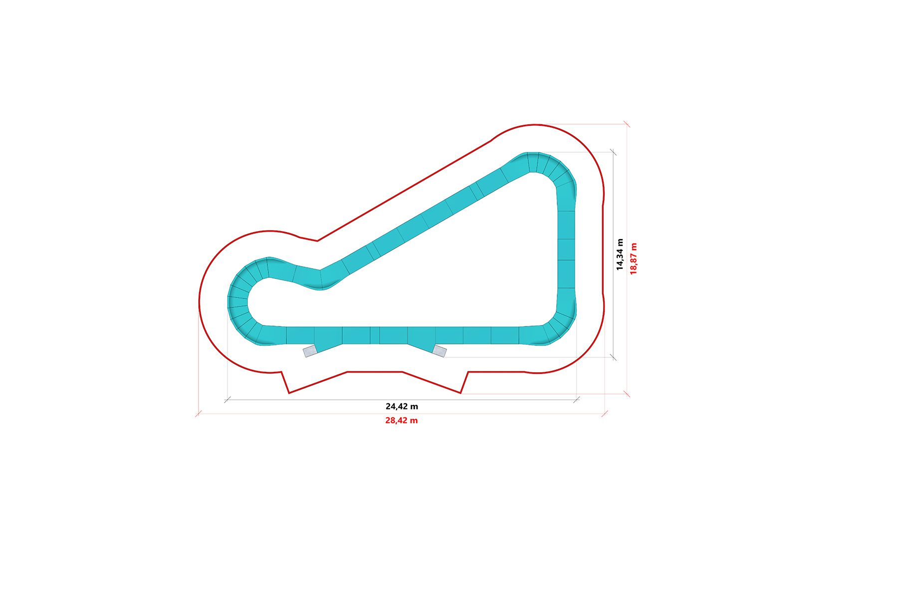 Il design modulare consente una rapida installazione e una possibile riconfigurazione futura. Grazie a un sistema di piedini regolabili, la pista può essere installata anche su terreni irregolari, consentendo di adattare la struttura a diversi spazi ricreativi.