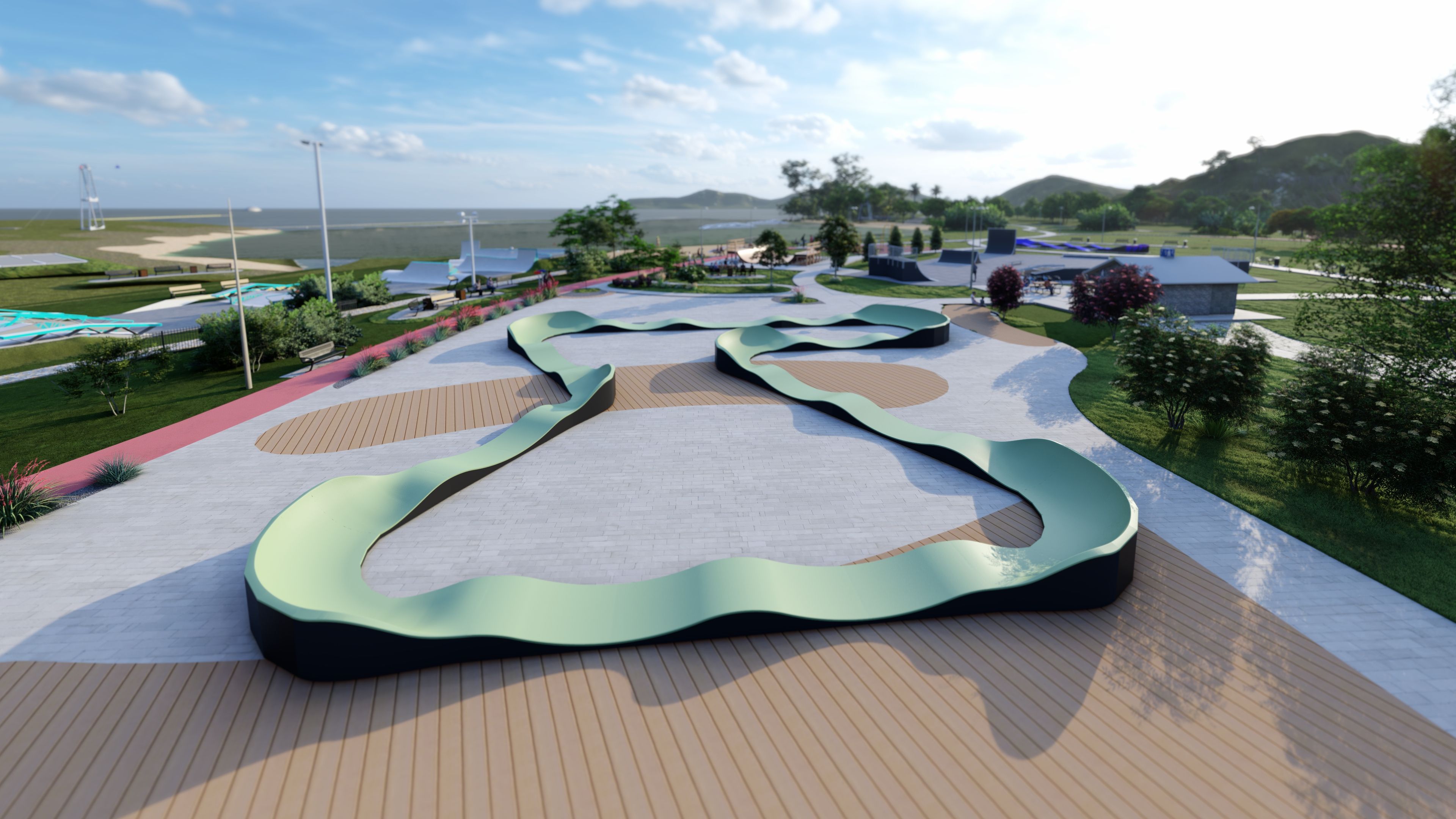 Il CAVE PF14E Pumptrack è una pista avanzata con una lunghezza della superficie di corsa di 89,1 m, ideale per i ciclisti che cercano sfide e varietà nelle loro corse. Copre un'area di 30,02 m x 33,63 m, offrendo una pista ampia e variegata, adatta sia ai principianti che agli utenti esperti. Grazie alla sua struttura robusta e al design accurato, Pumptrack CAVE PF14E è perfetto per parchi, aree ricreative e altri spazi pubblici, offrendo un'esperienza intensa e una ricreazione attiva a tutti gli appassionati di ciclismo.