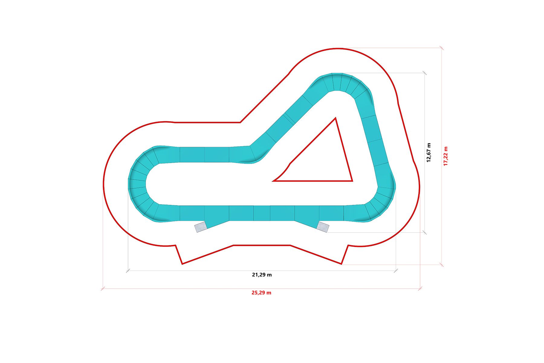 La pista ISLET TF005, lunga 57,5 m, è una pista modulare progettata per biciclette, skateboard, pattini in linea e monopattini. Il layout della pista si basa su una sequenza ritmica di gobbe e curve, che consentono di mantenere la velocità facendo lavorare il corpo in modo corretto, senza dover pedalare o spingere. Grazie alla sua geometria chiara, la pista è intuitiva e funziona bene sia per i principianti che per gli utenti più esperti.