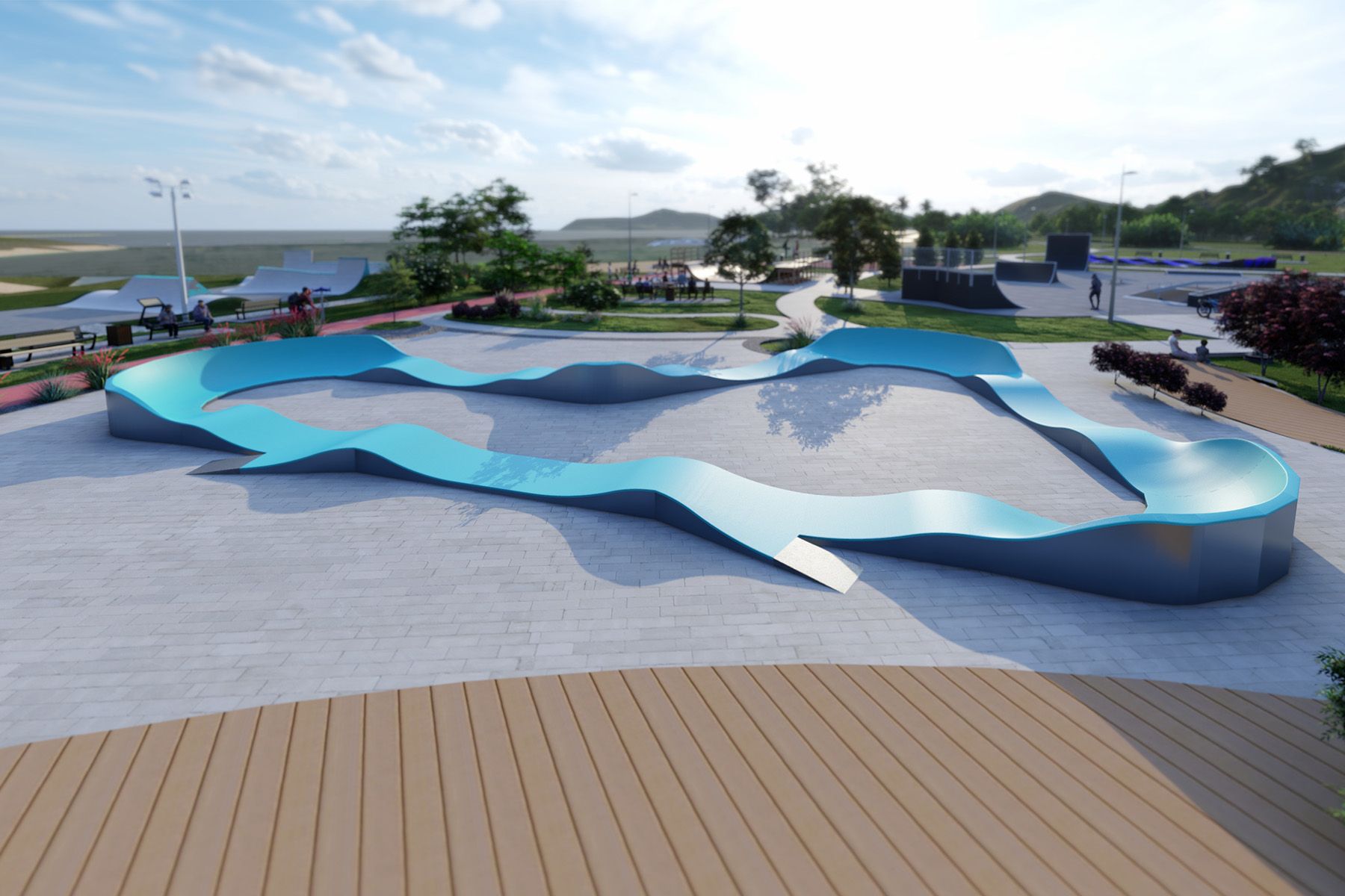 La pista è realizzata con la tecnologia steel-composite, che combina una struttura in acciaio galvanizzato con una superficie resistente con proprietà antiscivolo. I materiali utilizzati garantiscono un'elevata resistenza all'uso intensivo e alle mutevoli condizioni atmosferiche, riducendo al contempo la necessità di manutenzione.