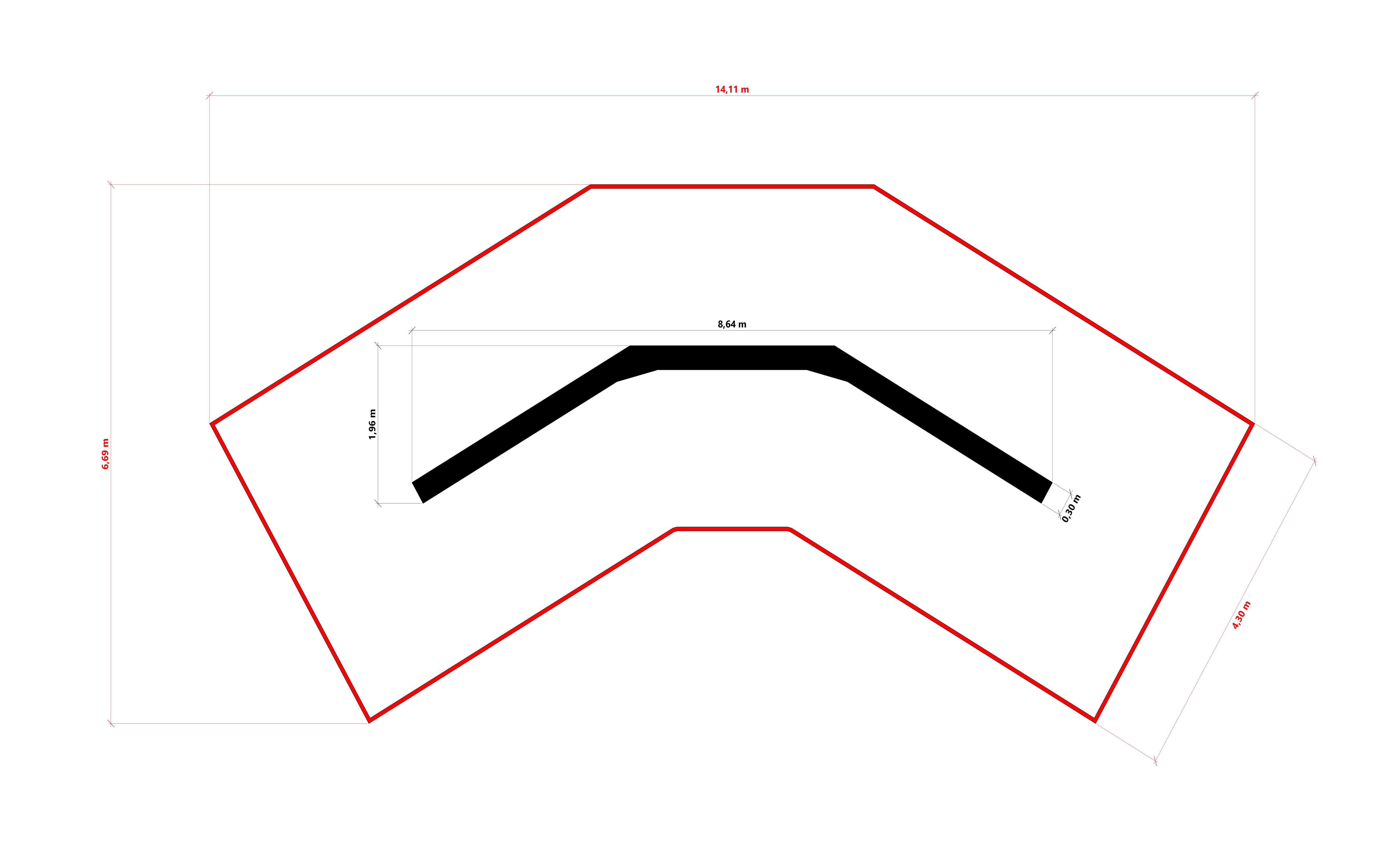 Passerella per bicicletta per l'allenamento dell'equilibrio con due curve destra / destra e rampe larghe 30 cm.