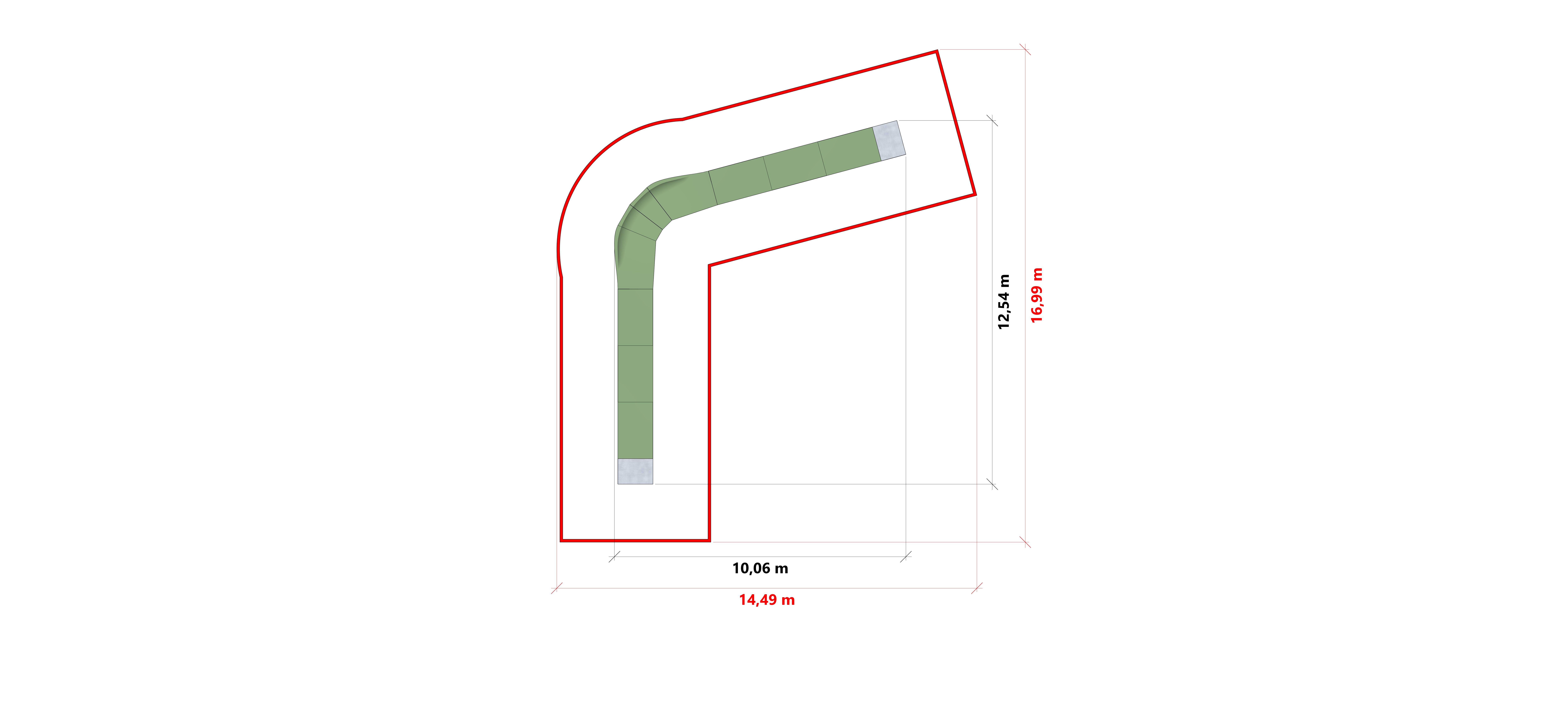 Pumptrack LINE PFL2 è una pista avanzata con una lunghezza della superficie di corsa di 18,7 m, ideale per i ciclisti che cercano sfide e varietà nella loro corsa. Copre un'area di 14,49 m x 16,99 m, offrendo una pista ampia e variegata che si adatta sia ai principianti che agli utenti esperti. Grazie alla sua struttura robusta e al design accurato, Pumptrack LINE PFL2 è ideale per parchi, aree ricreative e altri spazi pubblici, offrendo un'esperienza intensa e uno svago attivo a tutti gli appassionati di ciclismo.