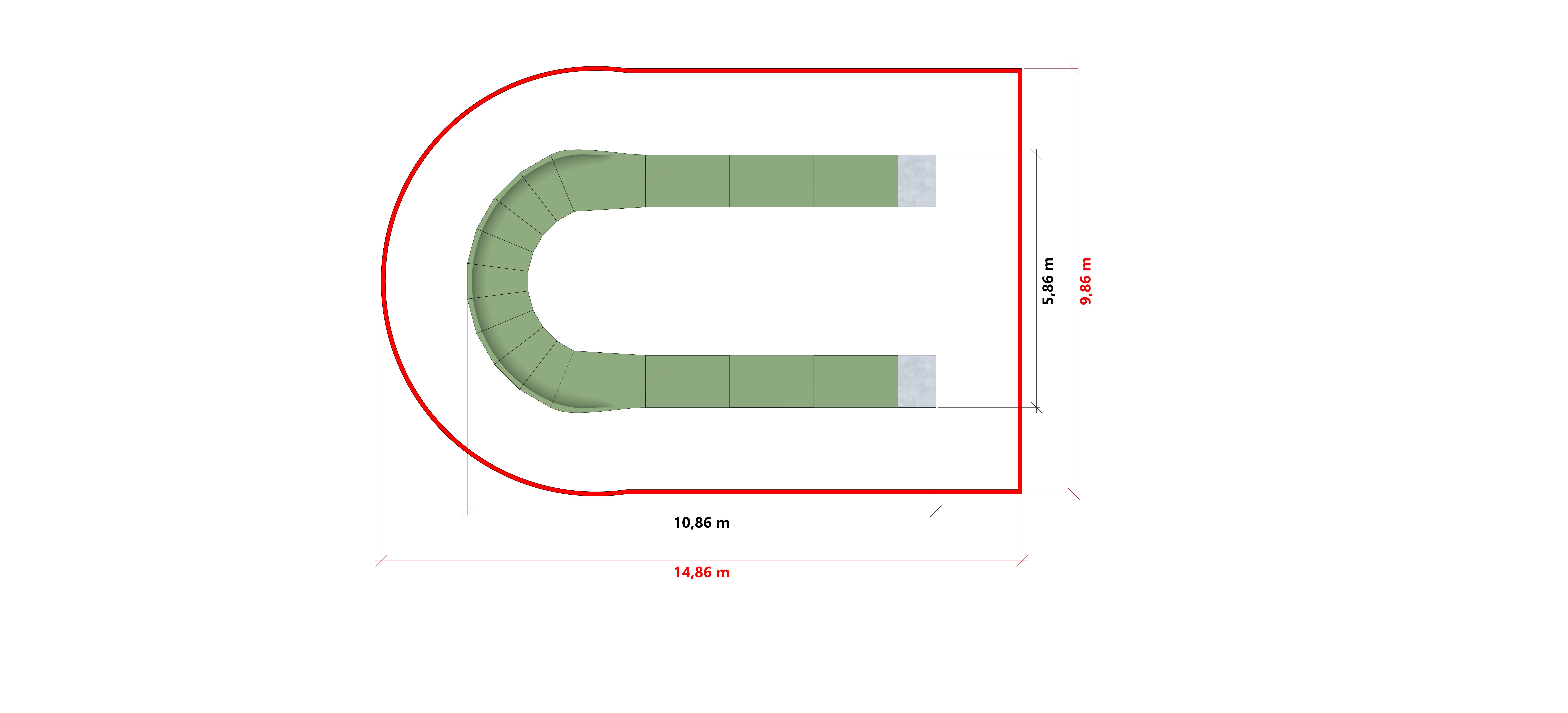 Pumptrack LINE PFL3 è una pista avanzata con una superficie di corsa lunga 23 metri, ideale per i ciclisti che cercano sfide e varietà nella loro corsa. Copre un'area di 14,86 m x 9,86 m, offrendo una pista ampia e variegata che si adatta sia ai principianti che agli utenti esperti. Grazie alla sua struttura robusta e al design accurato, Pumptrack LINE PFL3 è perfetta per parchi, aree ricreative e altri spazi pubblici, offrendo un'esperienza intensa e un'attività ricreativa attiva a tutti gli appassionati di ciclismo.