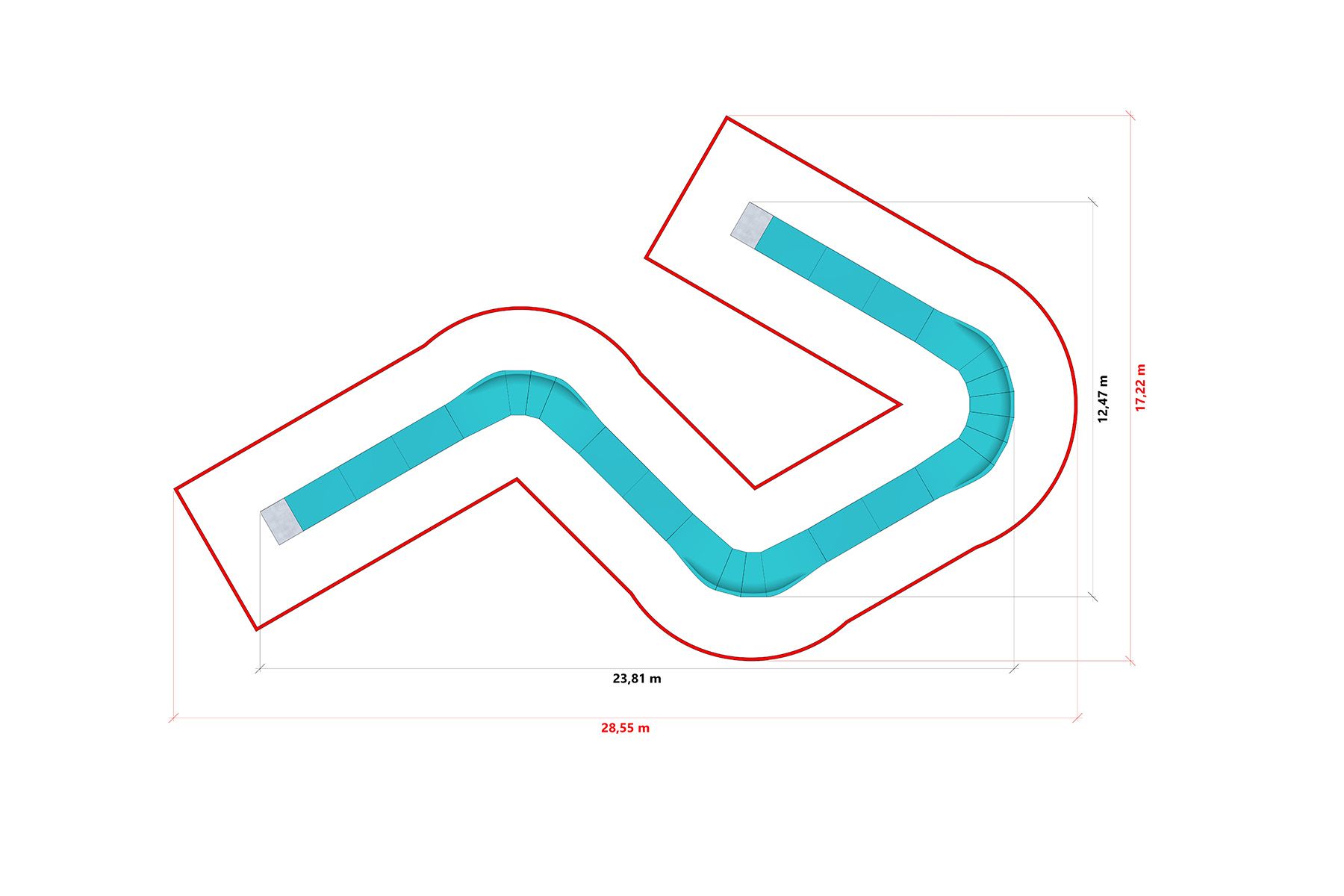 Il design modulare della pista consente una rapida installazione e una possibile riconfigurazione futura. Grazie ai piedini di livellamento regolabili, il pumptrack può essere installato anche su terreni irregolari e la sua natura mobile ne consente l'utilizzo sia come infrastruttura ricreativa permanente sia come installazione temporanea durante eventi o zone sportive stagionali.