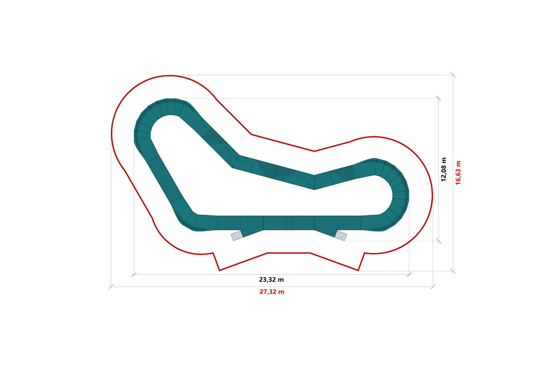 La pista è realizzata con la tecnologia steel-composite, che combina una robusta struttura in acciaio con una superficie composita durevole con proprietà antiscivolo. Questa soluzione garantisce un'elevata resistenza agli agenti atmosferici, una limitata necessità di manutenzione e una lunga durata della struttura.