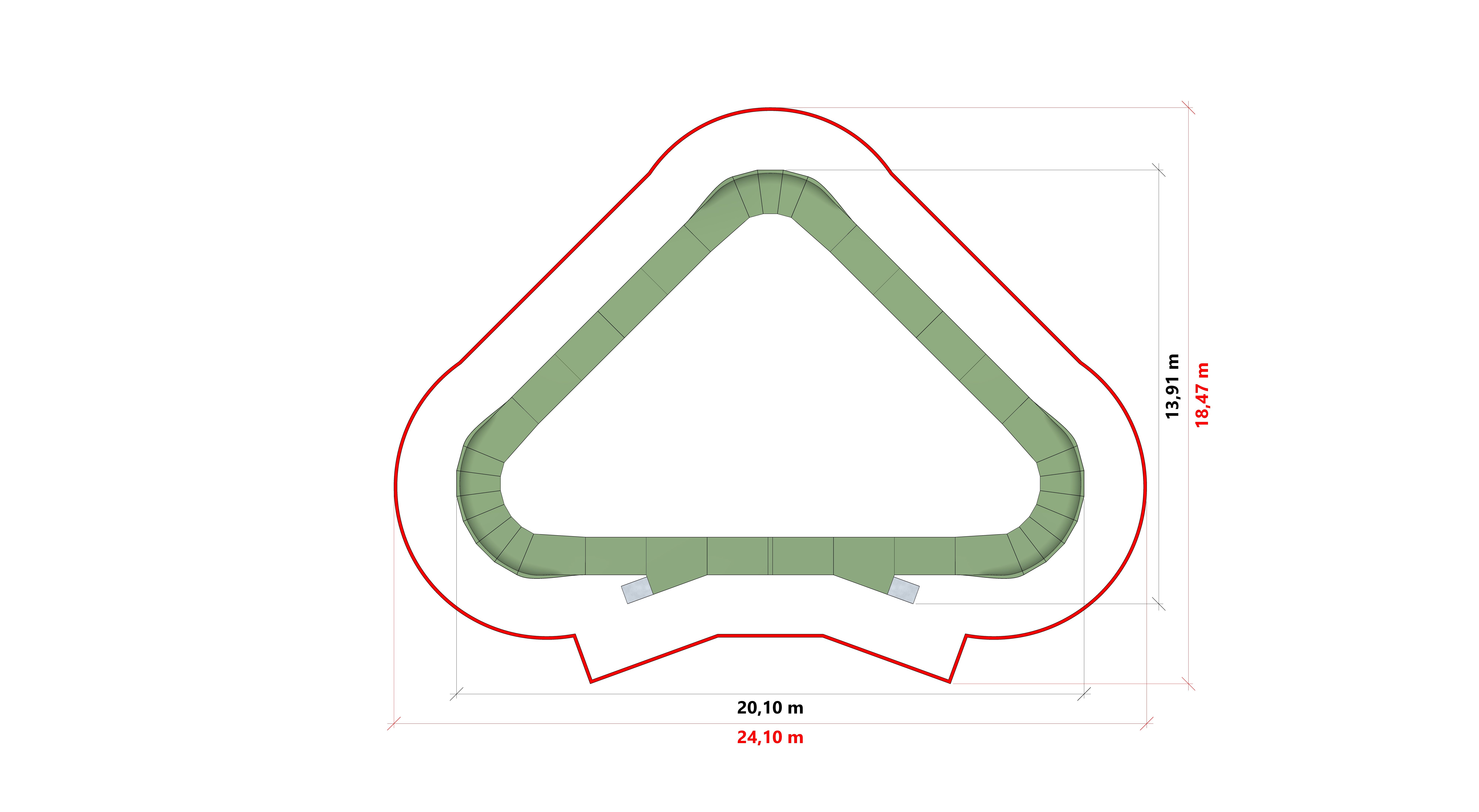 Pumptrack MOUNTAIN PF4E è una pista avanzata con una superficie di corsa lunga 53,9 m, progettata per gli appassionati di ciclismo dinamico. Copre un'area di 13,91 m x 20,10 m, offrendo percorsi ampi e variegati che rappresentano una sfida sia per i principianti che per gli utenti più esperti. Pumptrack MOUNTAIN PF4E è la scelta ideale per parchi, scuole e aree ricreative, garantendo grande divertimento e sviluppo delle capacità ciclistiche.