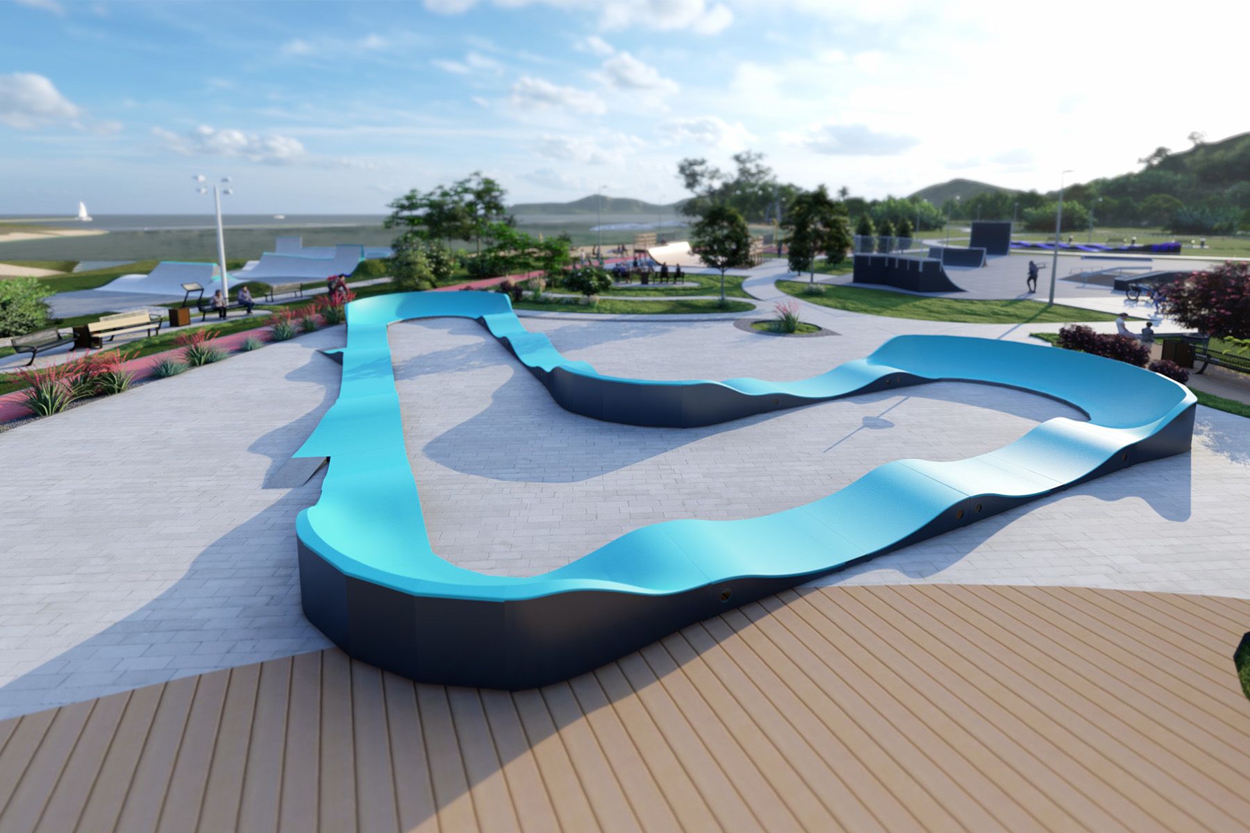 Il design modulare consente una rapida installazione e una possibile riconfigurazione futura. Grazie a un sistema di piedini regolabili, la pista può essere installata anche su terreni irregolari, consentendo di adattare la struttura a diversi spazi ricreativi.