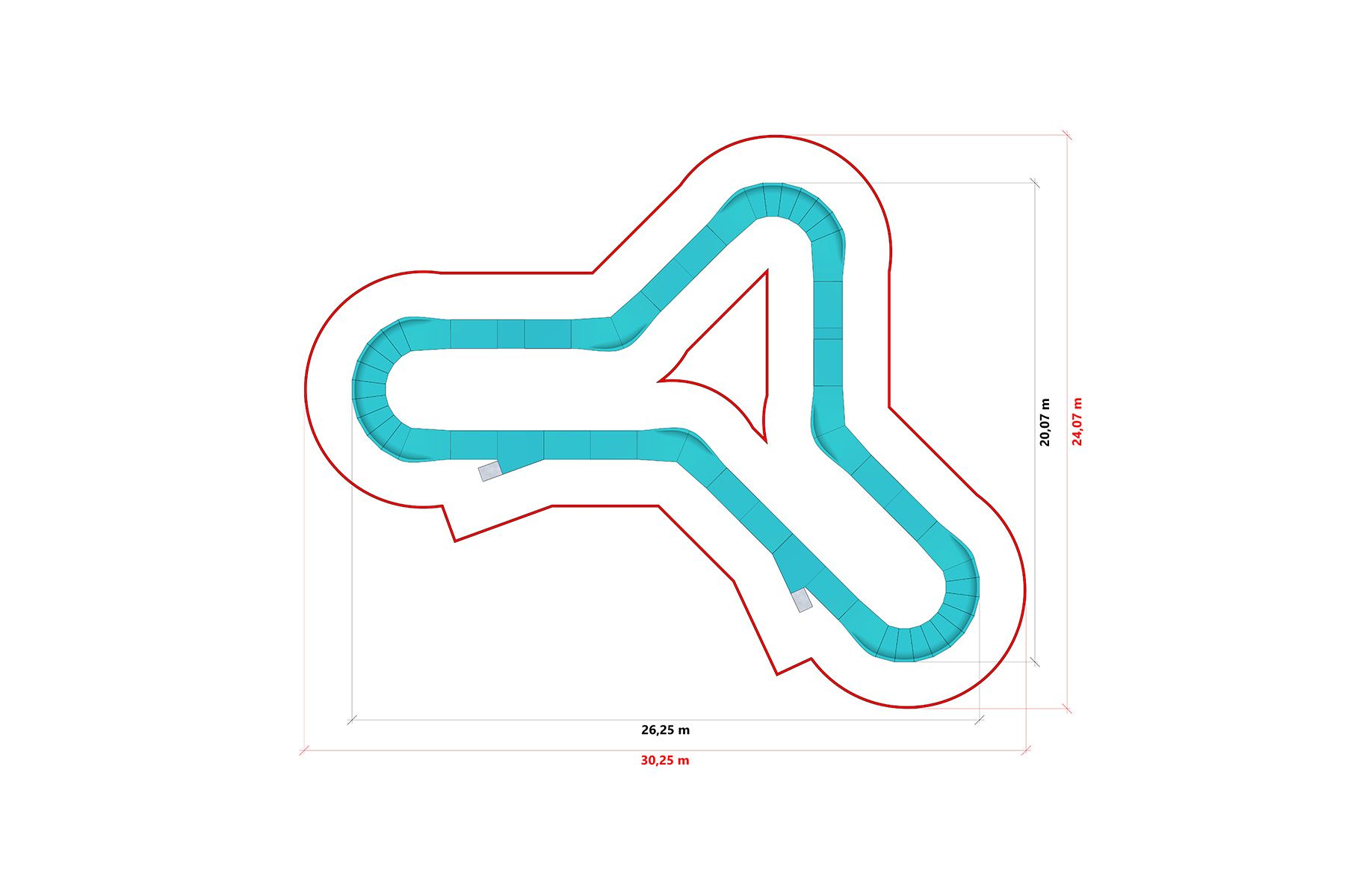 Il design modulare consente una rapida installazione e una possibile riconfigurazione futura. Grazie a un sistema di piedini regolabili, la pista può essere installata anche su terreni irregolari, consentendo di adattare la struttura a diversi spazi ricreativi.