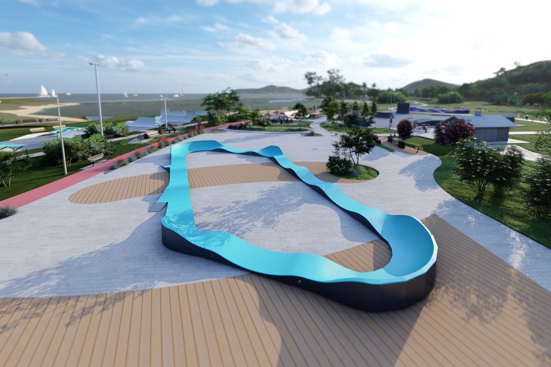 Il design modulare consente una rapida installazione e una possibile riconfigurazione futura. Grazie a un sistema di piedini regolabili, la pista può essere installata anche su terreni irregolari, consentendo di adattare la struttura a diversi spazi ricreativi.