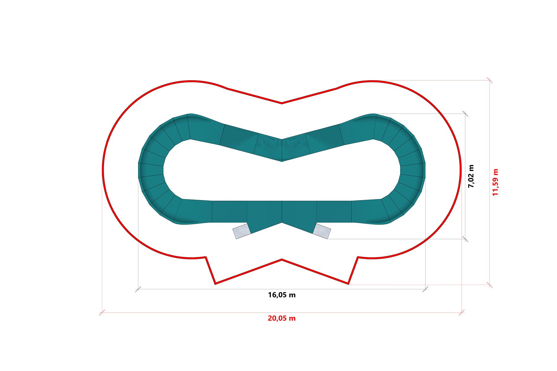 Il design modulare consente un facile montaggio, smontaggio e una possibile riconfigurazione futura della pista. Grazie a un sistema di piedini regolabili, il pumptrack può essere installato anche su terreni irregolari e la sua mobilità ne consente l'utilizzo sia come infrastruttura ricreativa permanente sia come installazione temporanea, ad esempio in occasione di eventi.