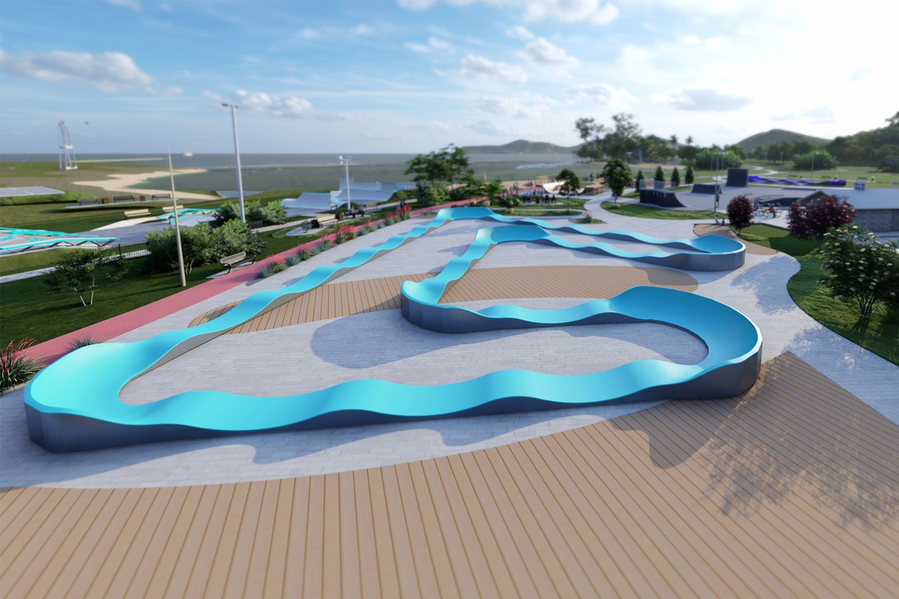 Il design modulare consente una rapida installazione e una possibile riconfigurazione futura. Grazie a un sistema di piedini regolabili, la pista può essere installata anche su terreni irregolari, consentendo di adattare la struttura a diversi spazi ricreativi.