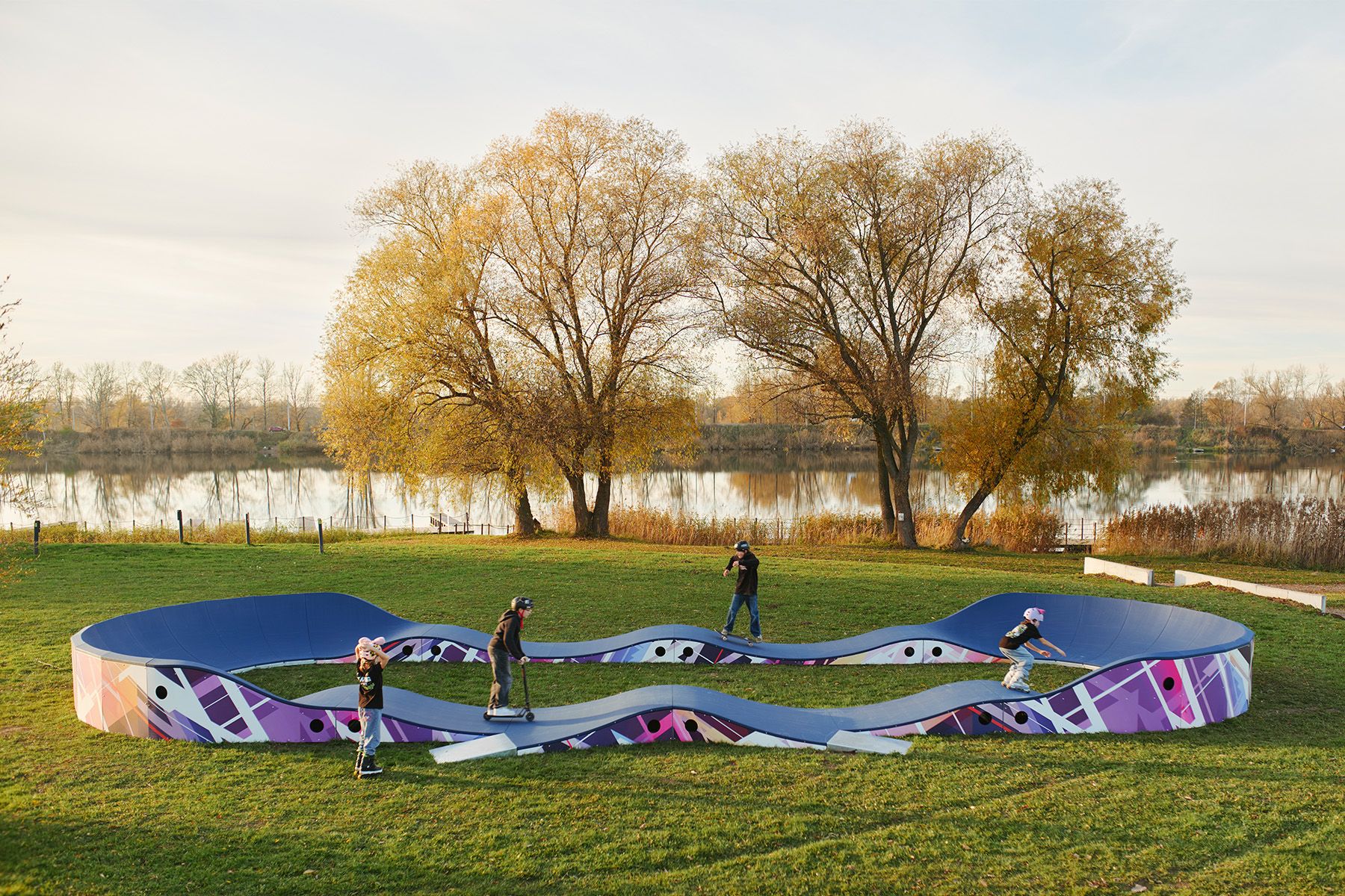 È una soluzione che funziona bene negli spazi pubblici: non richiede una manutenzione complicata, può sopportare un uso intenso e, grazie alla sua geometria raffinata, rimane confortevole sia per i principianti che per gli utenti più esperti. Un ulteriore vantaggio è rappresentato dalla carreggiata più larga, che migliora il comfort di guida e la sicurezza, oltre alla possibilità di abbinare la combinazione di colori dell'impianto al carattere dello sviluppo.
